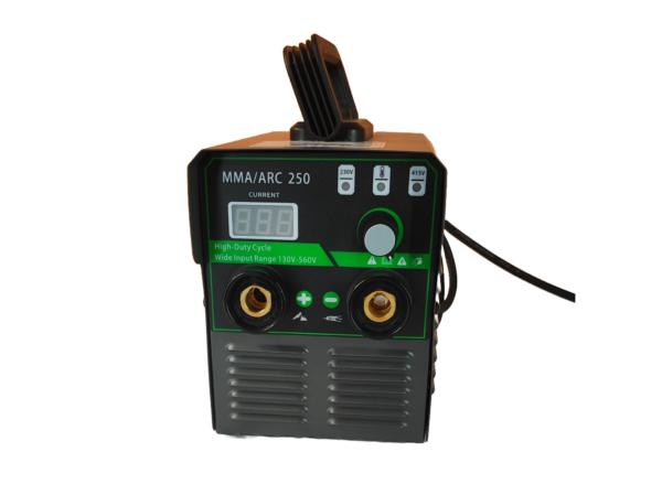The ARC 250 is a heavy-duty, dual-voltage inverter welding machine suitable for professional and industrial applications.