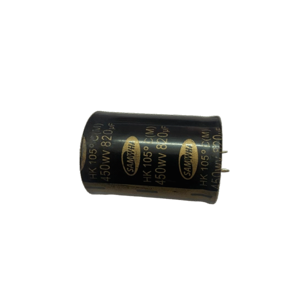The 820µF 450V Big Capacitor from SAMWHA is a high-quality electrolytic capacitor built for high-voltage, high-current applications. Its large size ensures superior energy storage, longer life, and enhanced thermal performance — making it suitable for welding machines, power inverters, and industrial-grade equipment.